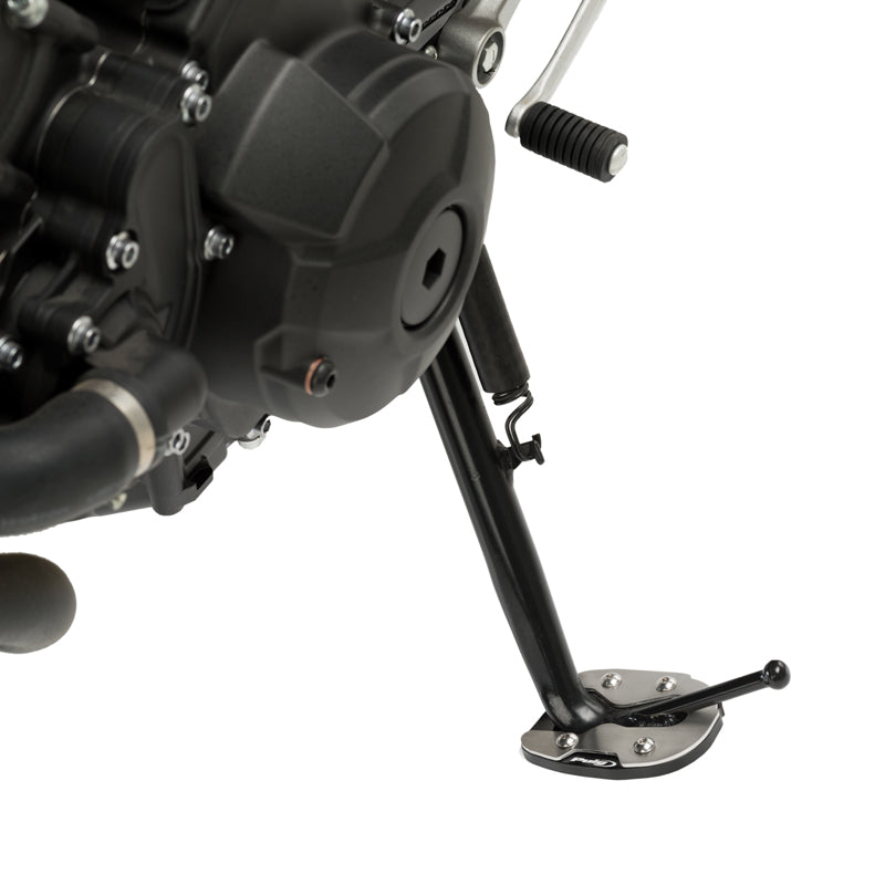 Increased stability is achieved by increasing the contact area between the side stand and the ground.