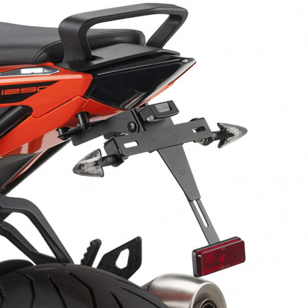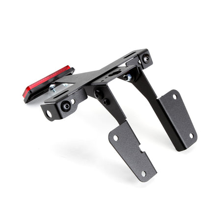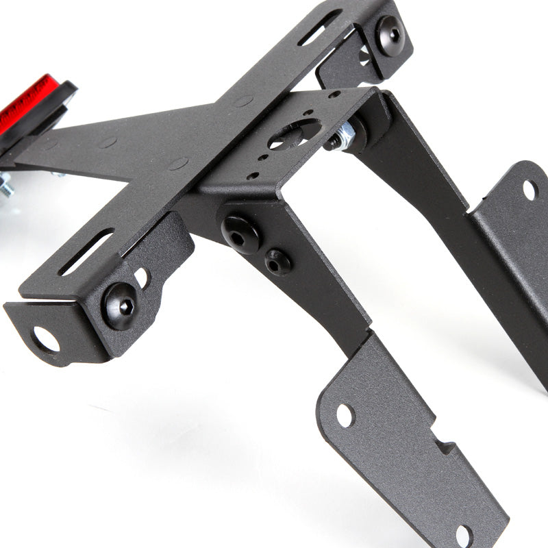 각 차종 전용 설계에 의한 확실한 피팅을 실현. 장착에 의해 커스텀 이미지 업에 크게 공헌합니다. 내구성을 고려해, 본체 부분은 엄선한 스틸 소재에, 전용의 에폭시 도료로의 도장을 베풀어 높은 내후성을 갖게해, 라이센스 마운트 부분에는, 경량으로 유연성이 있는 폴리아미드 수지를 사용. 라이센스등, 리플렉터 부속. 번호판 설치 각도는 수직에서 30도를 기준으로 설정.