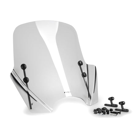 クルーザーからスクーター、スポーツネイキッドやビジネスバイクまで、多種多様な車種へ対応するスクリーンをラインアップ。スクリーン形状に合わせたマウント方式と汎用性の高いステーでセッティングすることで、幅広い車種への装着を実現。