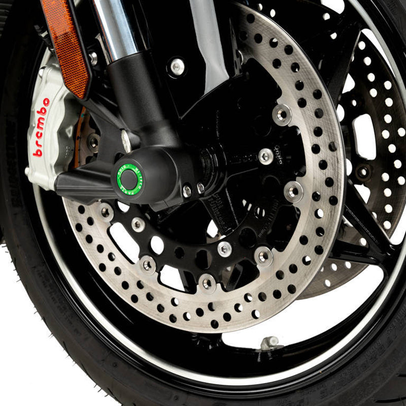製品装着によりカスタムイメージの構築と転倒時に受傷しやすいフロントフォークのボトムエンド、スイングアームエンド付近の保護に貢献します。