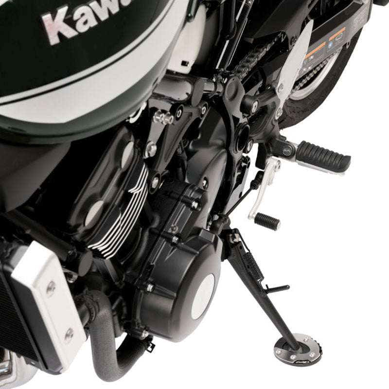 サイドスタンドと地面との接地面を拡大することで安定性を向上させます。