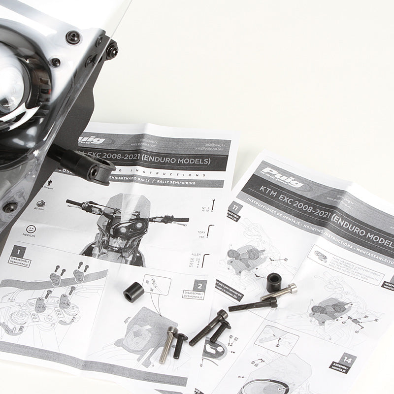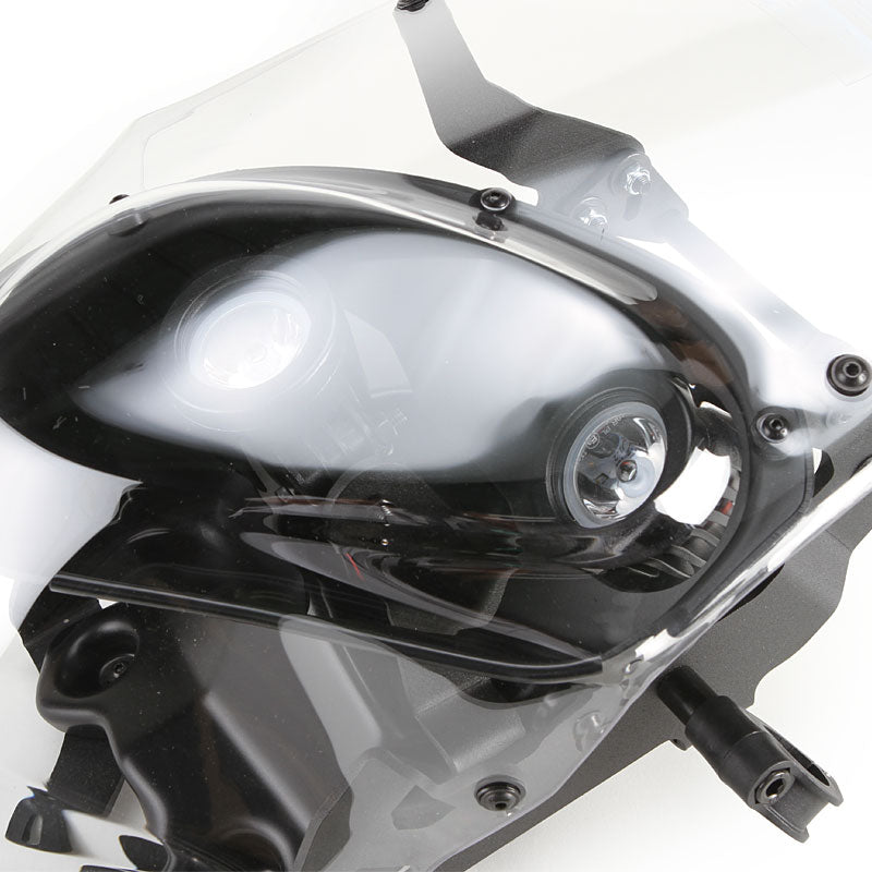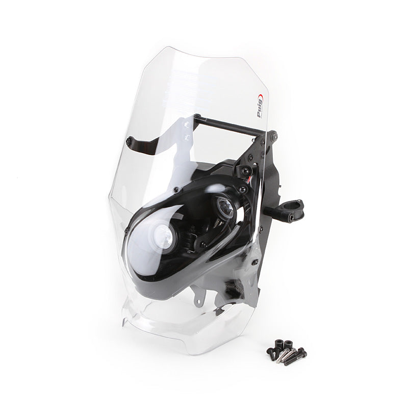 Puig Rallyセミファーリングは、耐衝撃性の高い高性能3mm厚ポリカボネートを用いて製作し、ライダーを風雨、飛び石などから守ります。