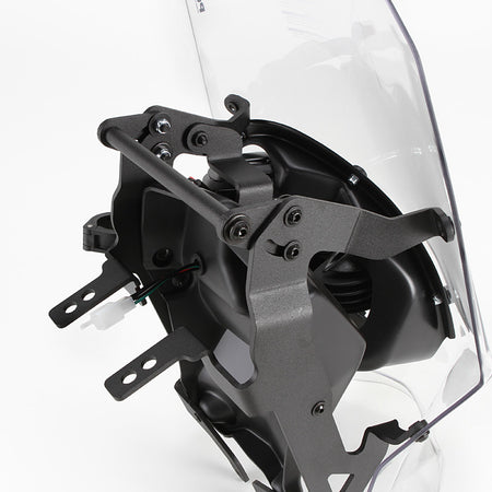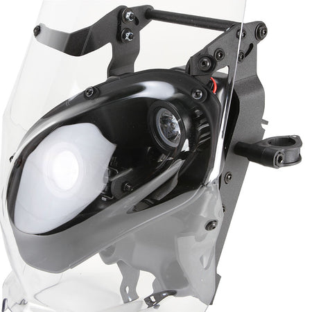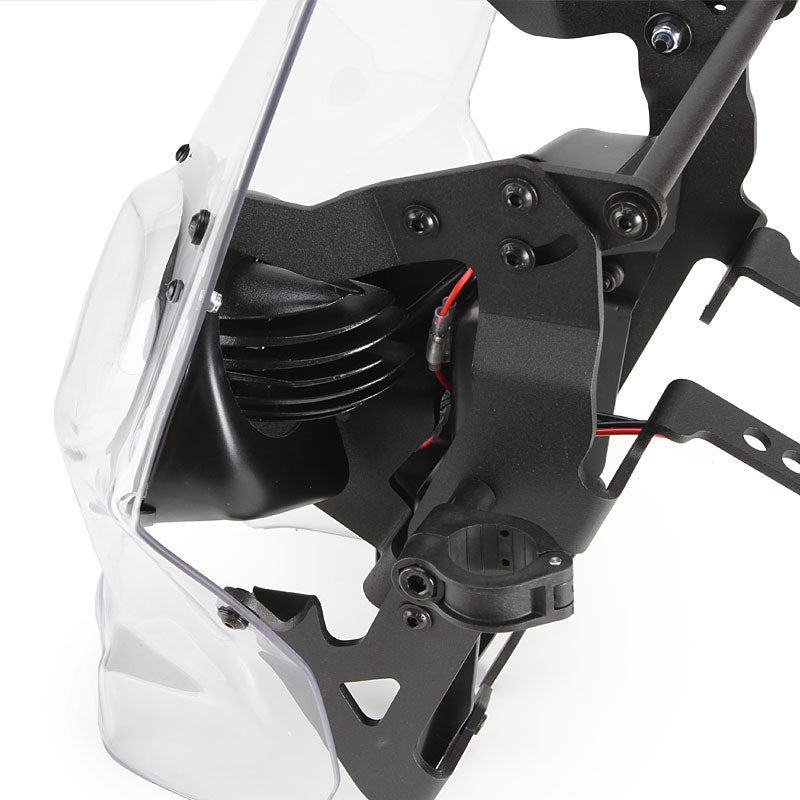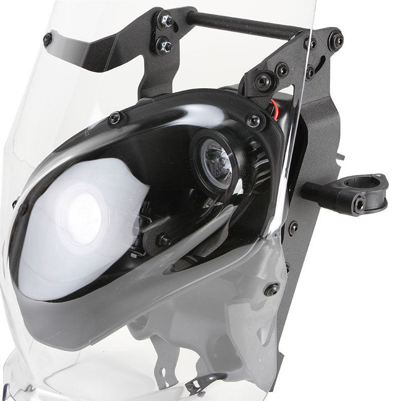 付属のアルミ製ステーにはナビゲーションなどのアクセサリーマウントを設けており、Rallyセミファーリングは、それらのアクセサリー保護も考えデザインされています。