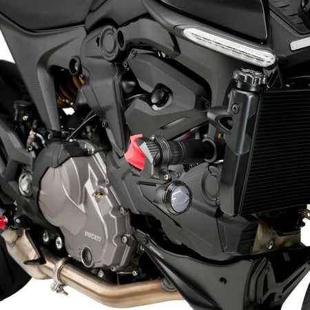 車種毎に異なる、最も効果的な装着位置を検証し、スマートなルックスと高い保護機能を両立させた専用設計のスライダーキット(クラッシュパッド)。