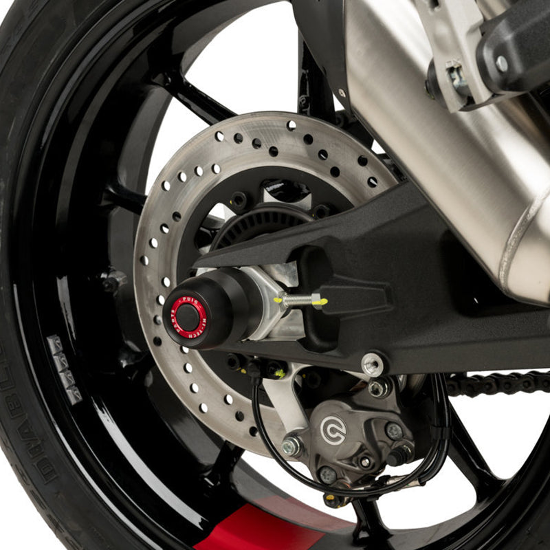 製品装着によりカスタムイメージの構築と転倒時に受傷しやすいフロントフォークのボトムエンド、スイングアームエンド付近の保護に貢献します。