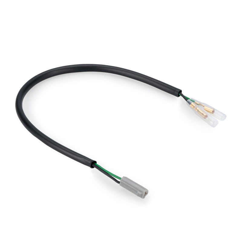 純正カプラーに対応したハーネス。車体の配線加工なしに、純正カプラーとPUIG製灯火類(ギボシ)を接続できます。