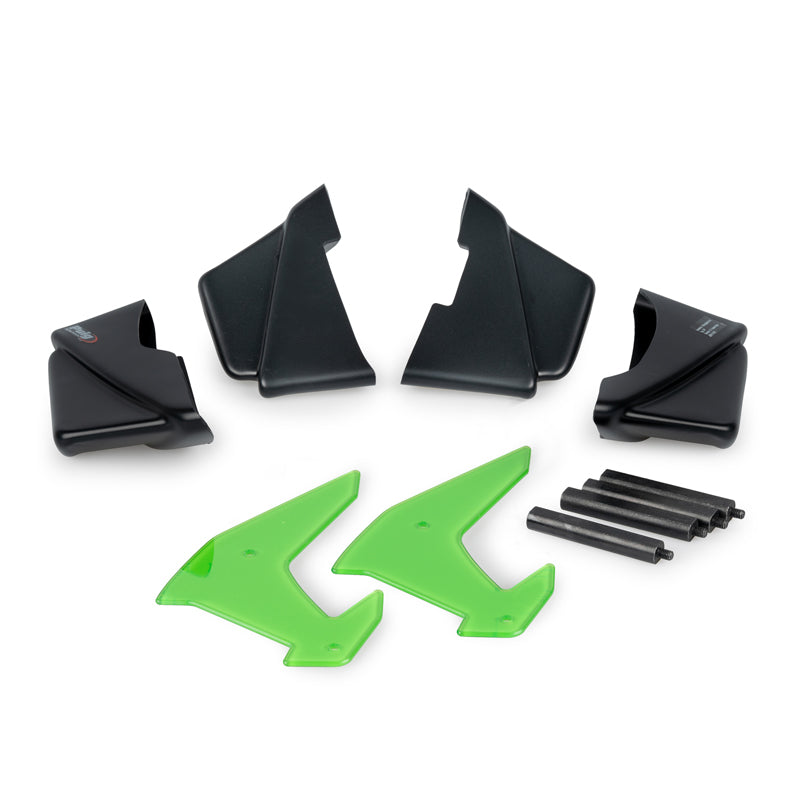 Puigがサポートする、FIMスーパーバイク世界選手権(SBK)において5年連続チャンピオンを獲得した絶対王者「KAWASAKI Racing Team」との共同開発により誕生した最新基準のエアロデバイス、スポイラー。本製品の装着により空力特性を改善するだけでなく、車両のスタイルをよりアグレッシブに演出します。