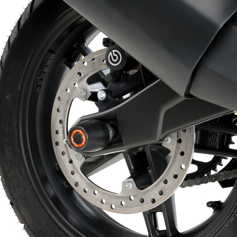 製品装着によりカスタムイメージの構築と転倒時に受傷しやすいフロントフォークのボトムエンド、スイングアームエンド付近の保護に貢献します。
