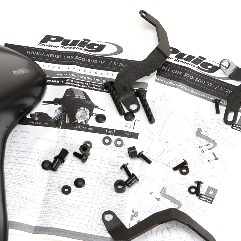 ABS製アッパーカウルにアクリル製スクリーンをマウントしたウインドシールドです。車両ごとに専用設計された付属のステーで強固にマウントし、高い防風効果を発揮いたします。車種専用設計ならではのフィッテイングが、車両との一体感を演出いたします。ラインナップの中からカウルの仕上げ、スクリーンカラー、スクリーン高さを、お好みのスタイルに合わせてご選択いただけます。