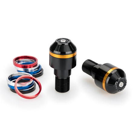 アルミブロックから機械加工により削り出されたバーエンド。6色のリング付属により
