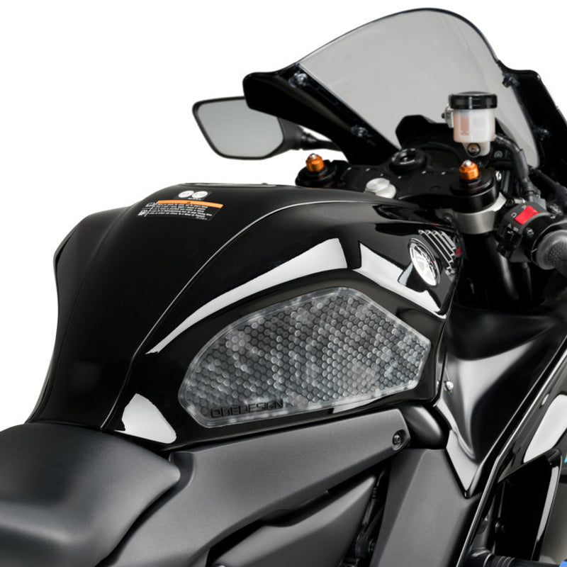 タンク両サイドに張り付けるゴム製のタンクパッド。