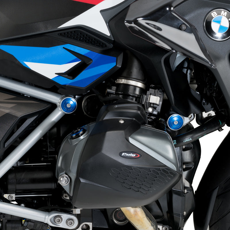 転倒時に傷つきやすいエンジンケースへのダメージを軽減させるボルトオン装着可能(※1)なケースカバー。 製品本体には専用配合を施した安全素材を採用し、低摩擦性能と衝撃吸収性能をマット仕上げされたケース保護部のボリュームは4mm厚。