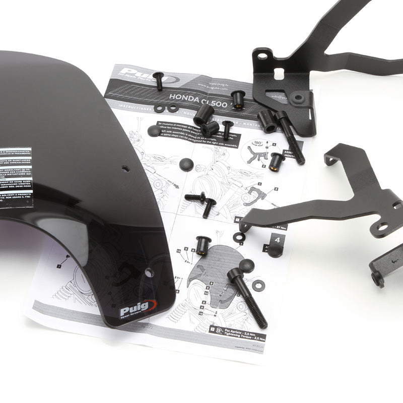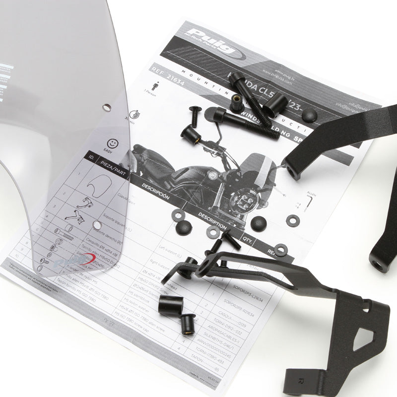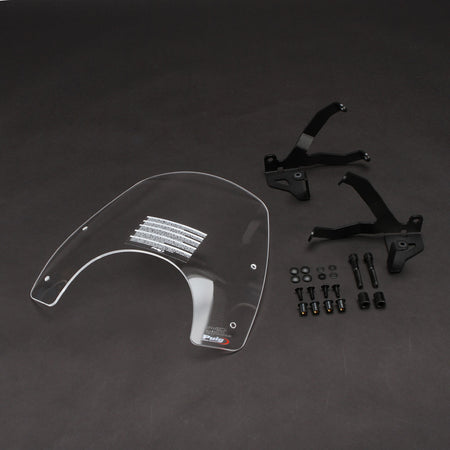 車両個々が持つ 特性、デザインを検証し、風洞シミュレーションの結果と合わせて、最良のバランスで形状を設定しております。高強度アクリルによる専用スクリーンと、車種専用ブラケットにより、汎用タイプスクリーンとは一線を画す抜群のスタイルとウインドプロテクションを発揮。スクリーンエンドの処理等、ドイツのTUV規制に準拠しており、ABE認証も取得しています。