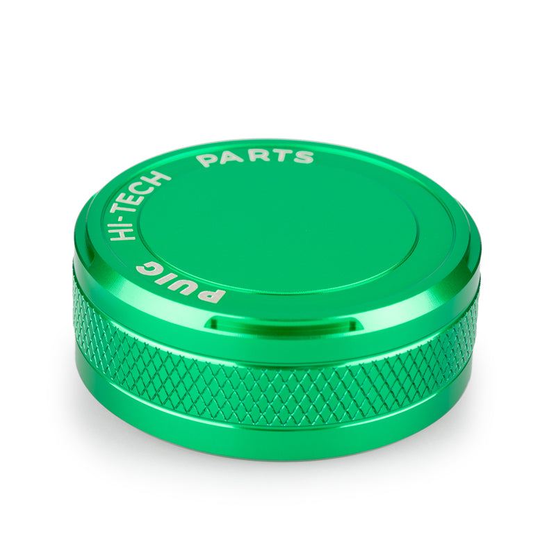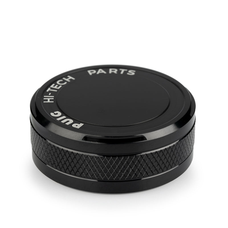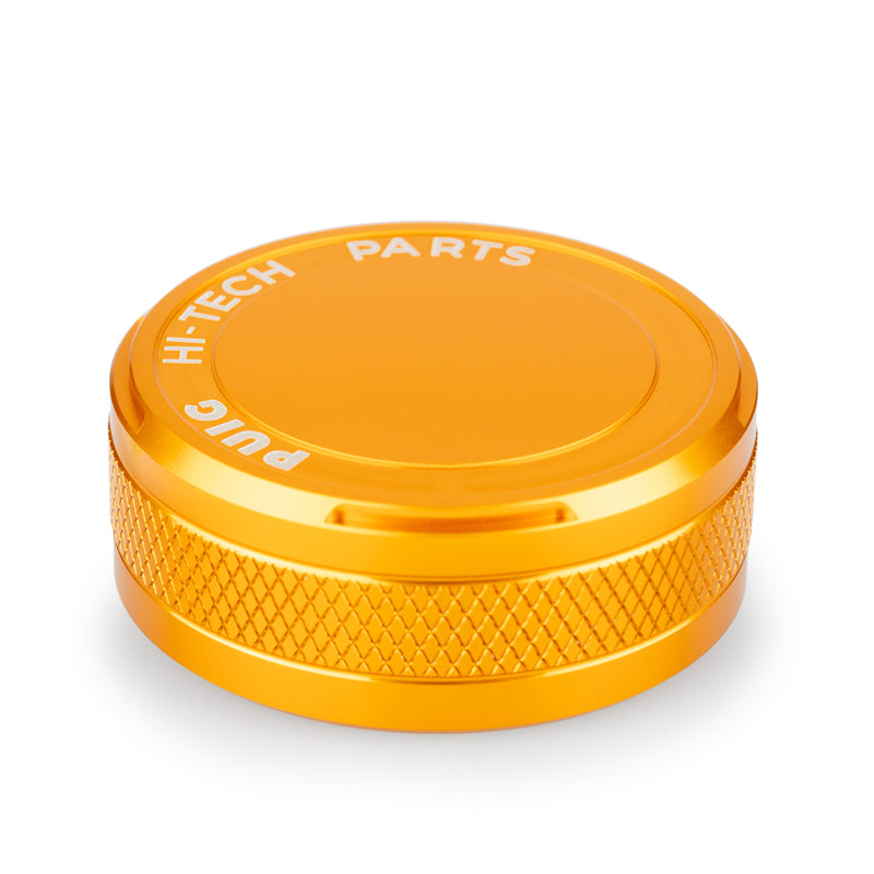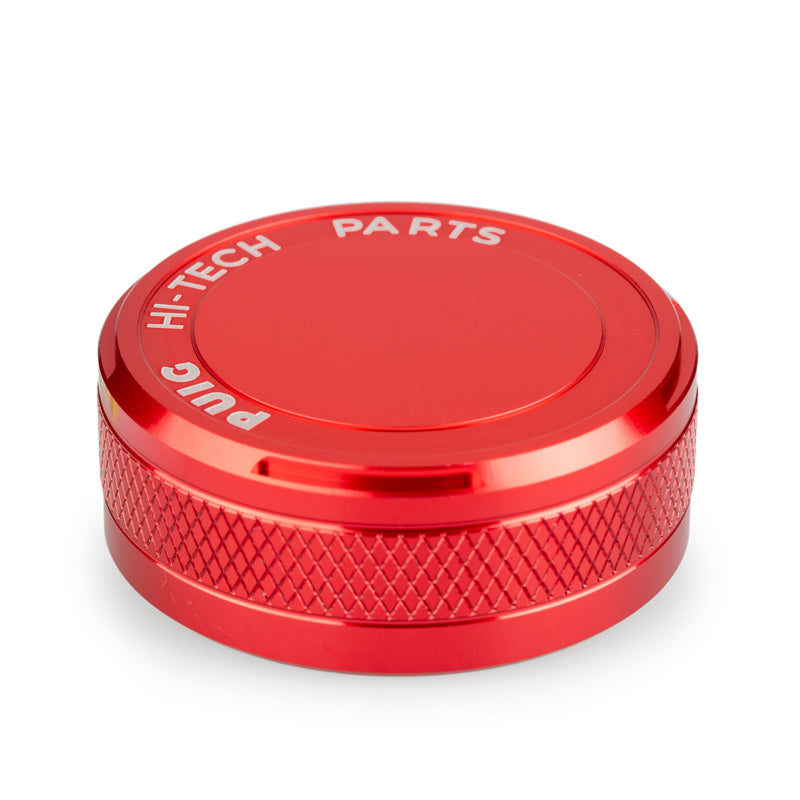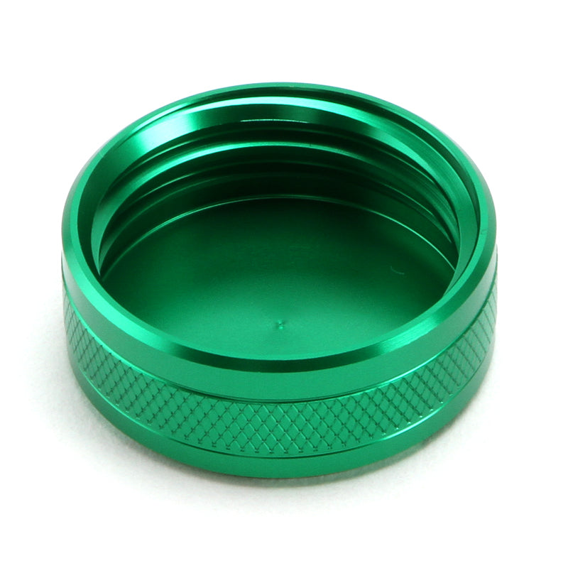 マシニング加工されたアルミ素材にアルマイト処理を施したリザーバータンクカバー。