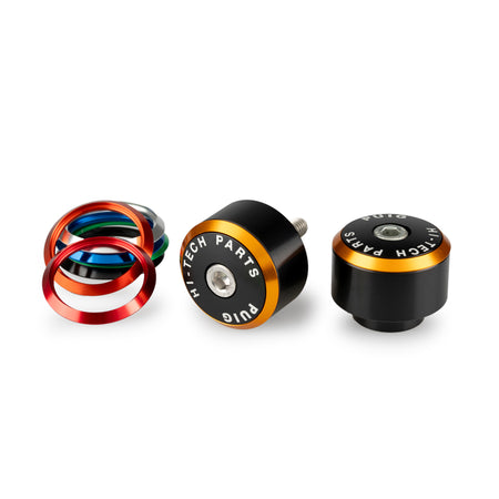 アルミブロックから機械加工により削り出されたバーエンド。6色のリング付属により