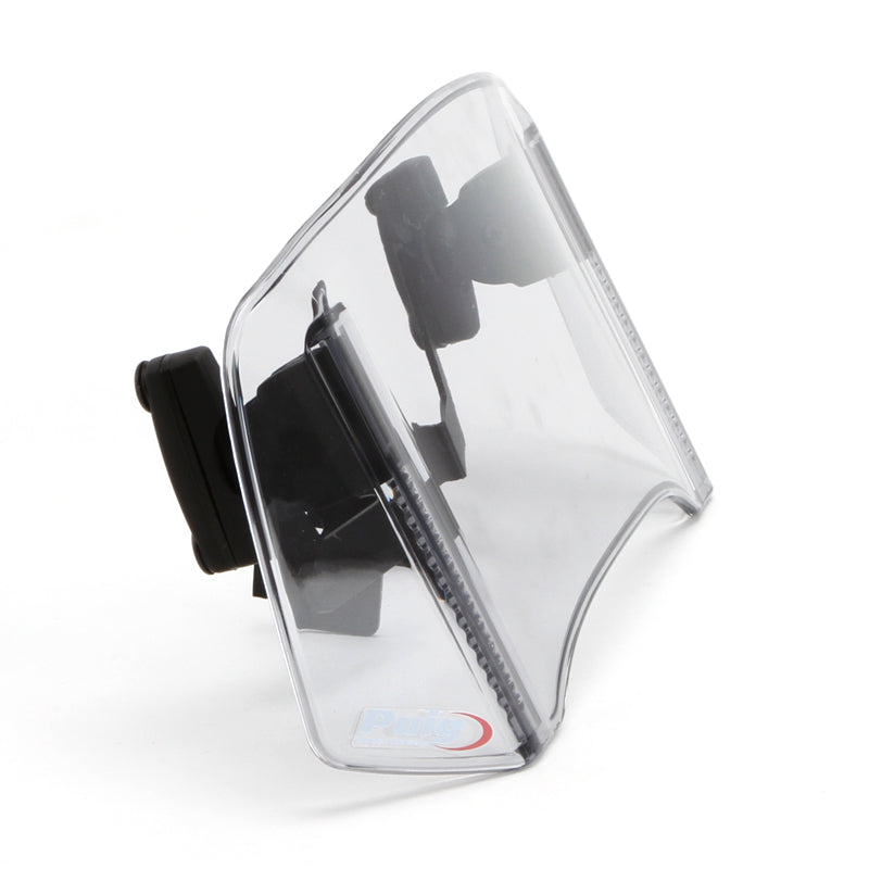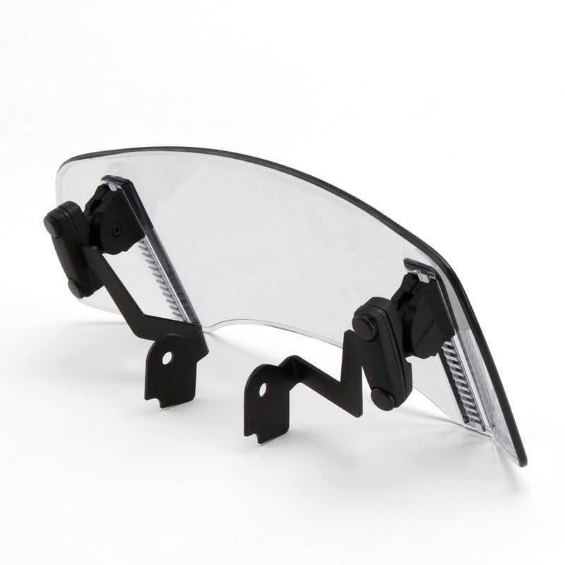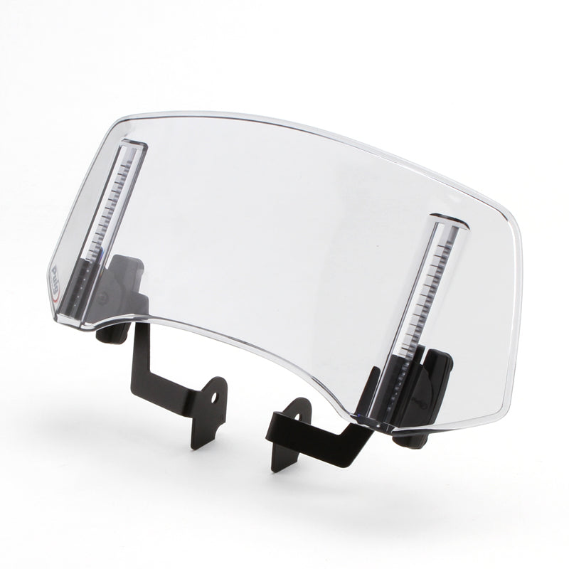 低い位置ではメーター裏を保護し、高い位置では、レーシングポジションを取った際に空気圧の低下を実感できます。
