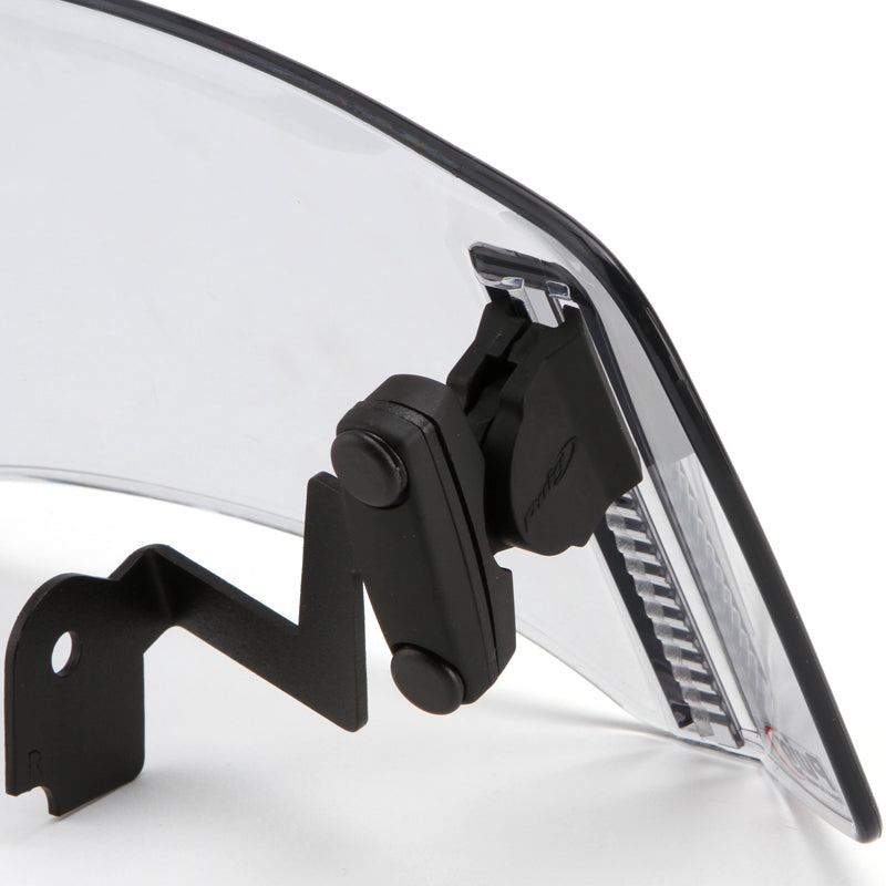 工具を使用せずに65mm高さ調整ができるバイザー。