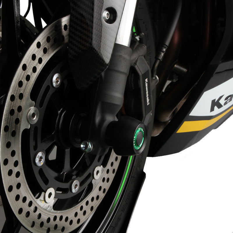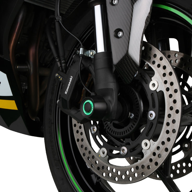 製品装着によりカスタムイメージの構築と転倒時に受傷しやすいフロントフォークのボトムエンド、スイングアームエンド付近の保護に貢献します。