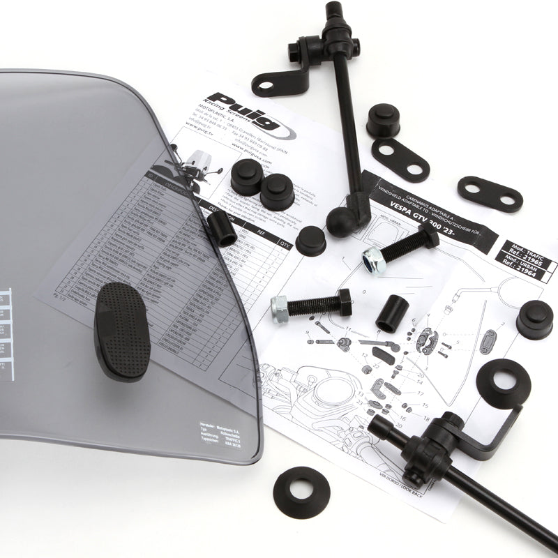 汎用タイプのウインドシールド Traficに、車両に合わせたマウントステーを付属することで、より簡単にボルトオンでの取り付けを可能にいたしました。 ドイツのTUV規制に準拠しており、ABE 38182認証も取得しています。