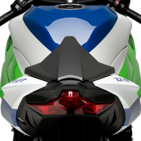 センターに整流フィンを設けたデザインは、よりアグレッシブにレーシングイメージを演出するだけでなく、車体後部に発生する乱流を効果的に軽減いたします。