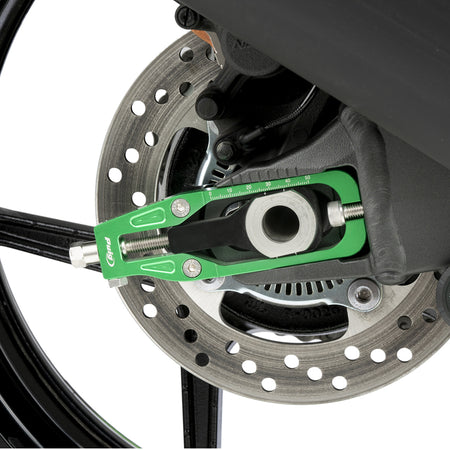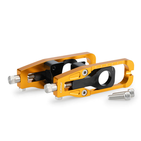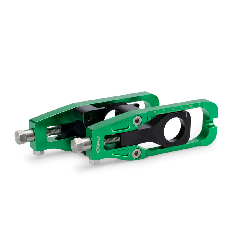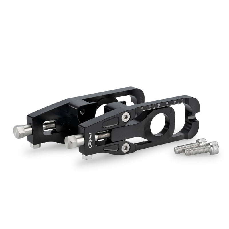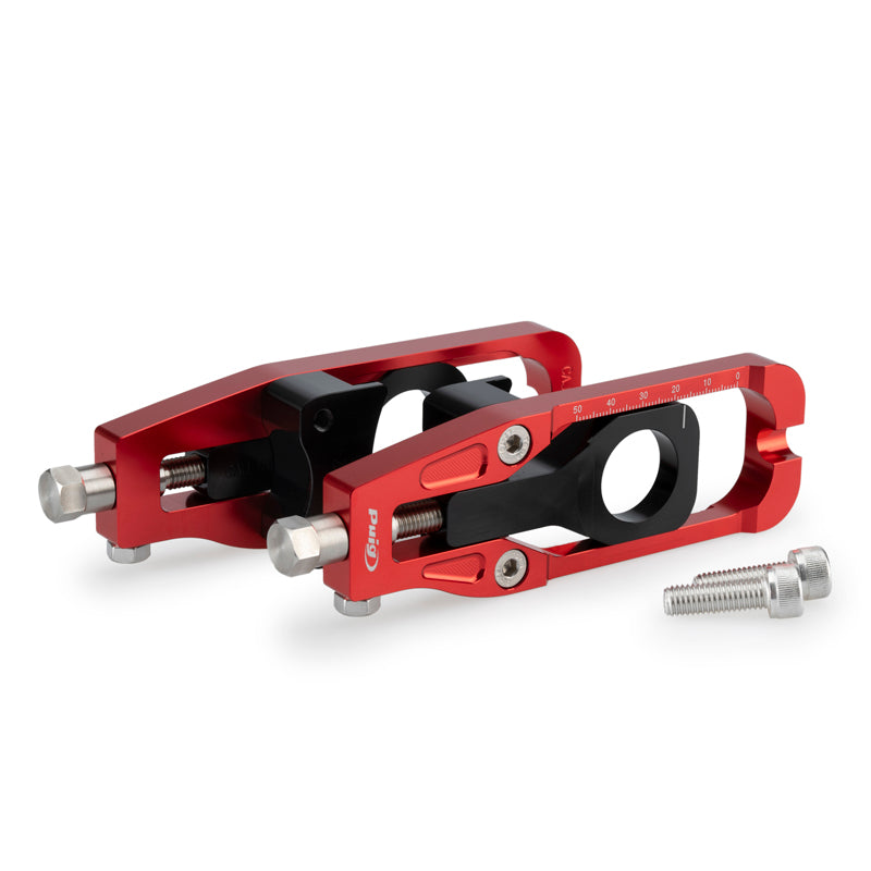 アルマイト処理された本体にレーザーマーキングを施し、チェーンの調整にはクリックタイプの調整ボルトを採用しており、簡単で正確なチェーン調整が可能になります。