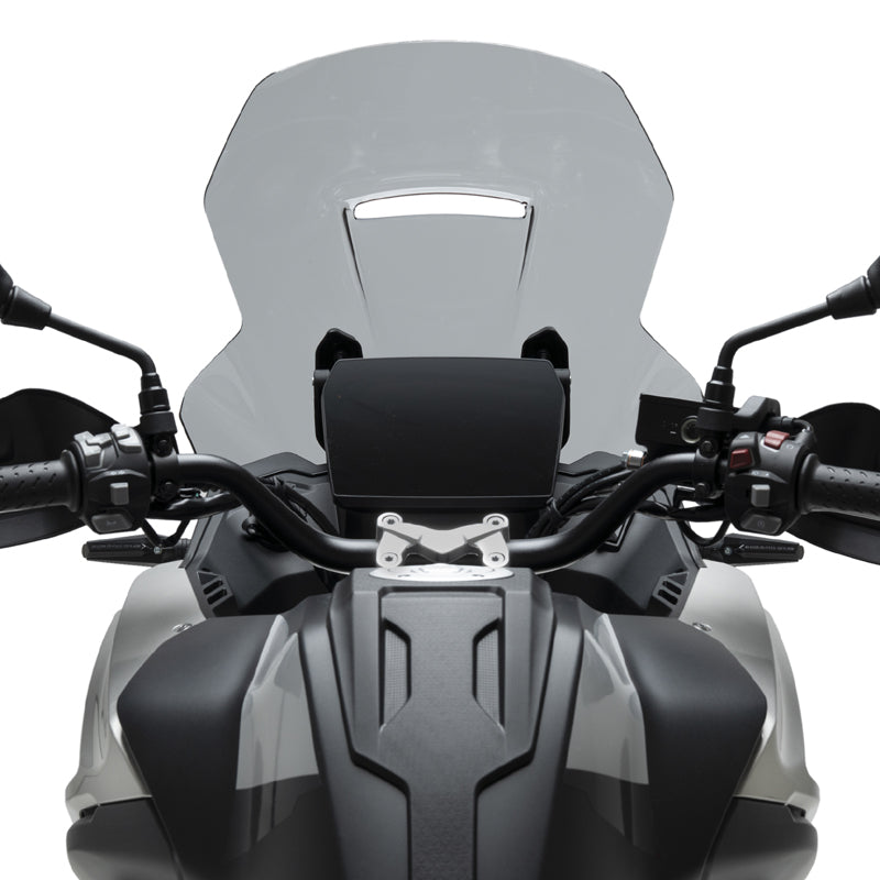 純正スクリーンと比較して、ライダーの胸部にかかる風圧を大きく改善いたします。