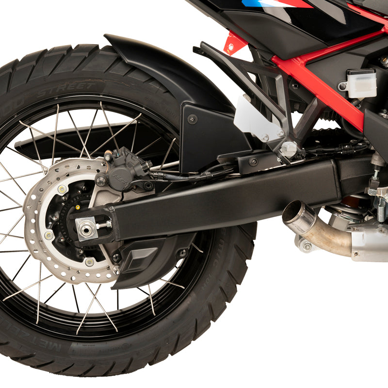 ビジュアル面にも寄与するユーロスタイルのABS樹脂製リアフェンダー。