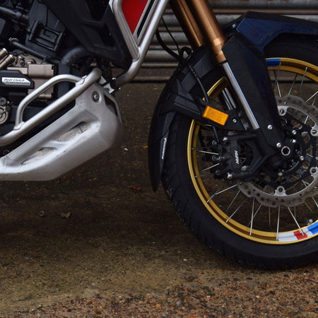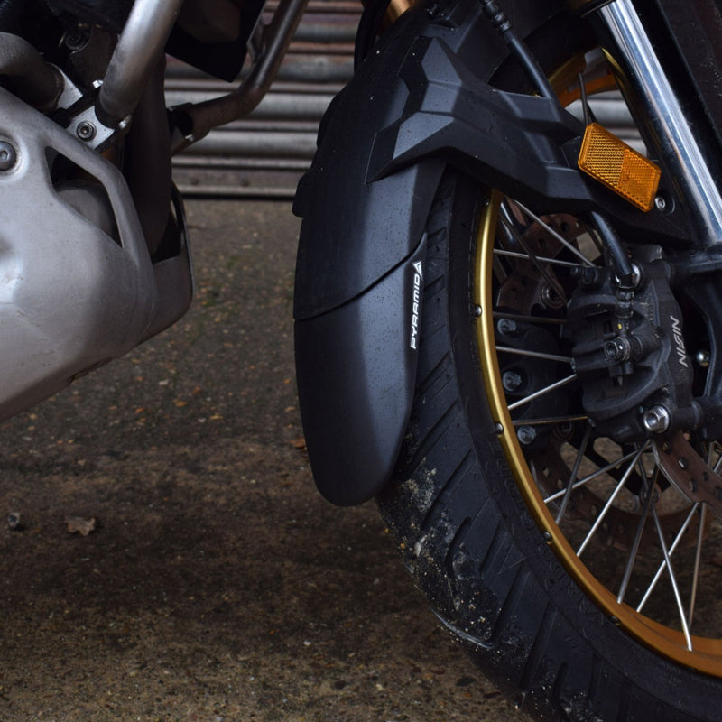 純正フロントフェンダー後端を延長させることにより、フロントタイヤが巻き上げる、飛び石、泥はね等を軽減させ、ラジエーター、エキゾーストパイプ等、車体の保護に貢献いたします。