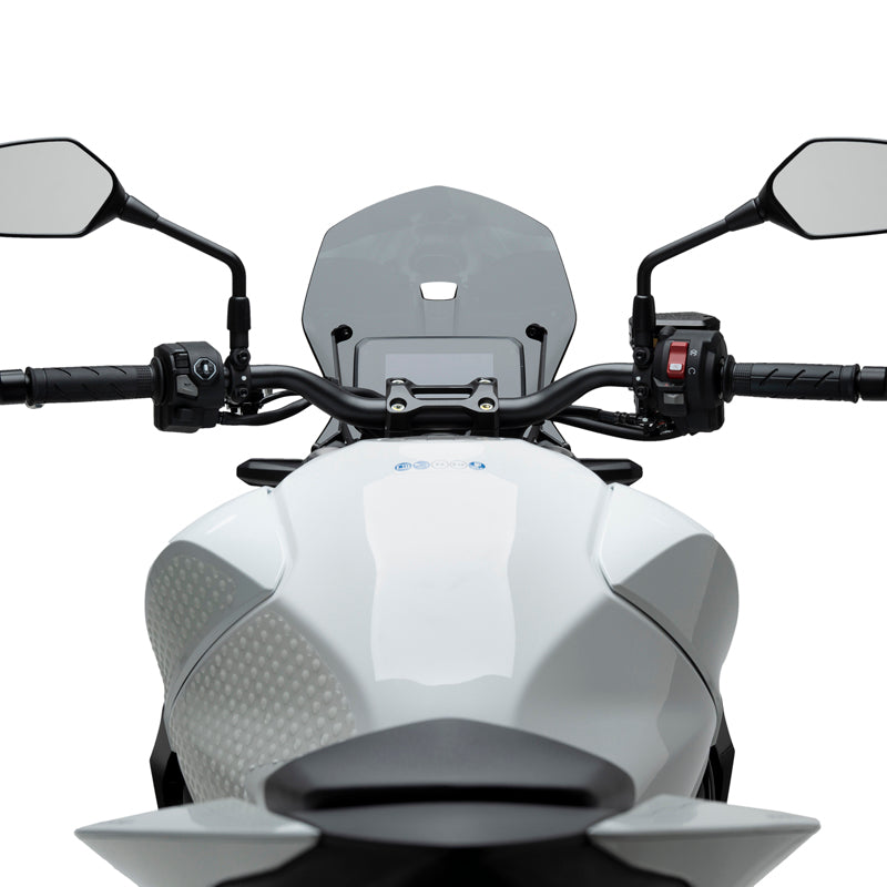 スクリーン中央に設けたエアーインテイクは、乱流を軽減させ、風切り音を低減致します。
