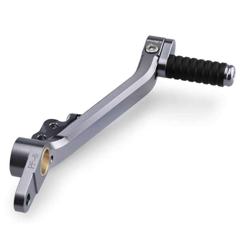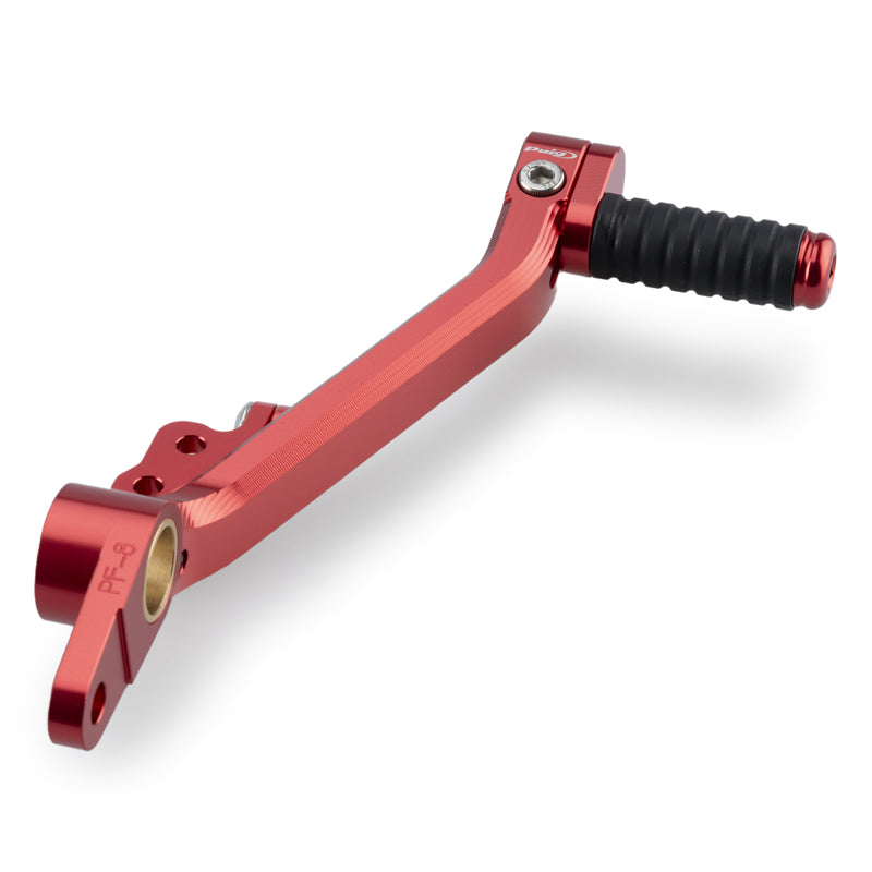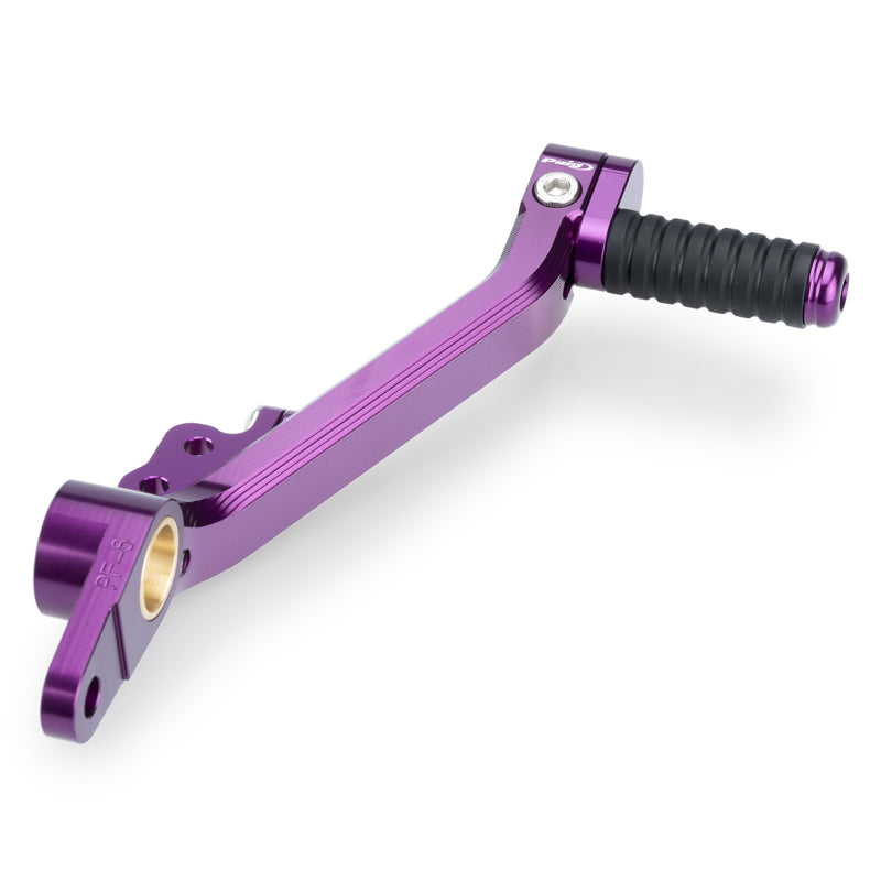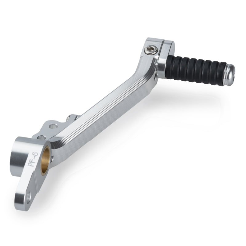 アルマイト処理された7色をラインナップ。軸受け部分に、専用ブッシュ用いることで、抜群の操作性を確保し、ペダル先端の操作部分には、調整機構を設け、高さ、角度の素早い調整を可能としています。