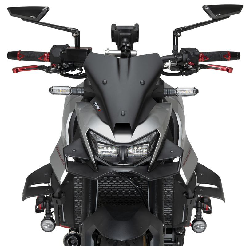 車両に合わせたオリジナルデザインにより、空力保護性能を向上させ、コンパクトなサイズにもかかわらず、ライダーの快適性を向上させています。