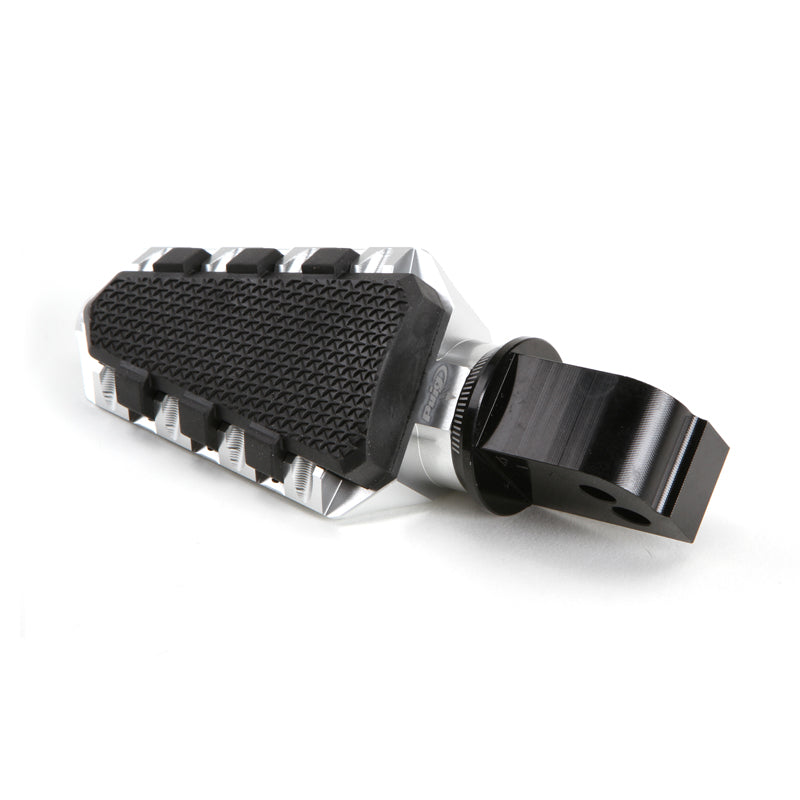 ライダーとマシンとの数少ない接点の一つ、フットペグ(ステップバー)。
