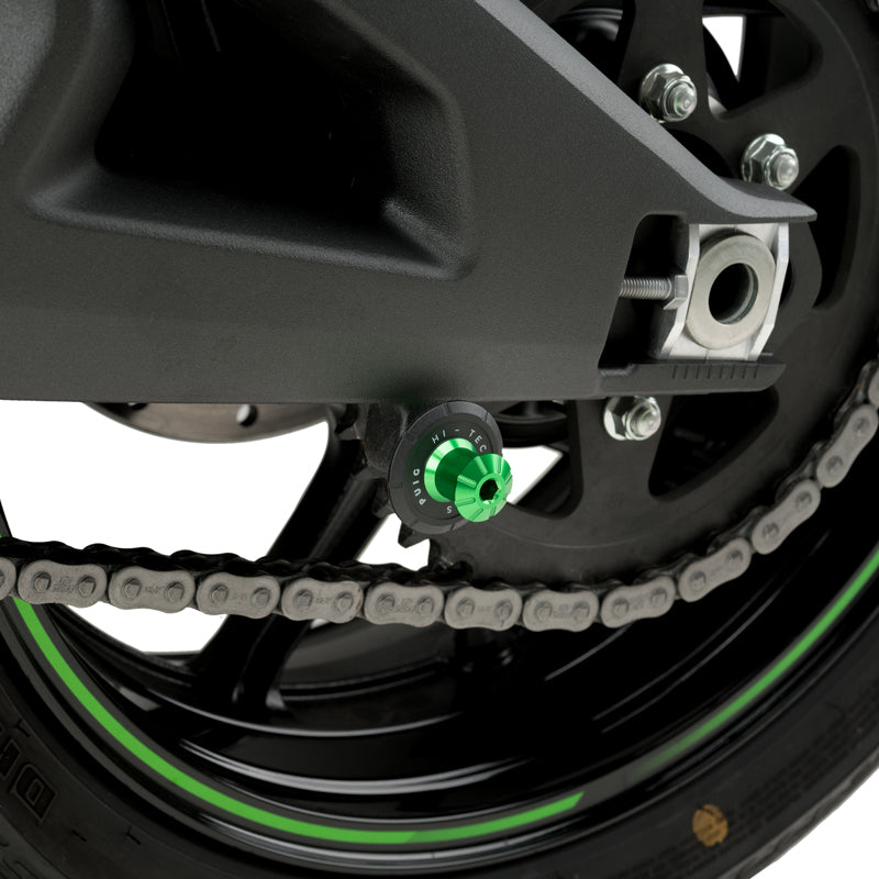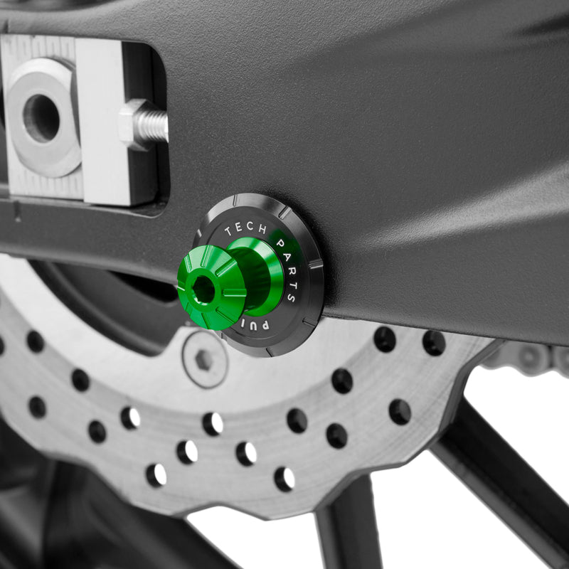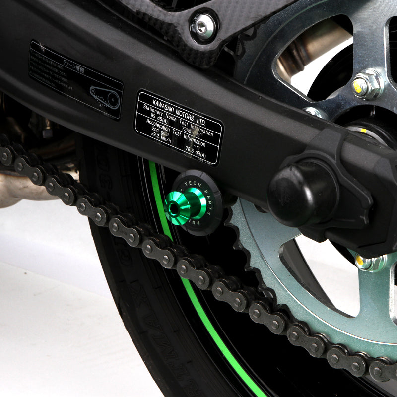 樹脂製カラーが大きめに設定されており、スタンドアップ時にスイングアームを傷から守ってくれます。