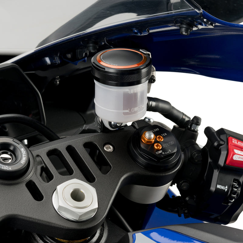 マシニング加工されたアルミ素材にアルマイト処理を施したリザーバータンクキャップ。